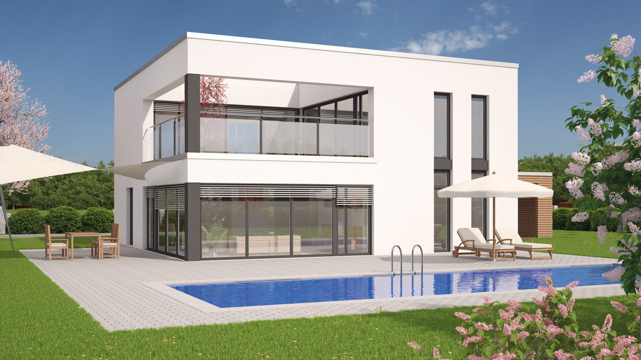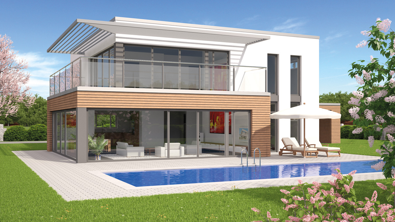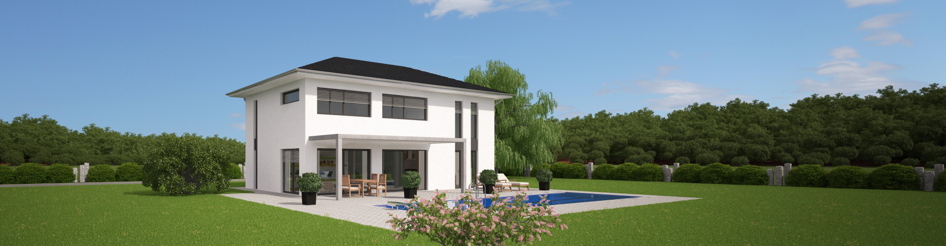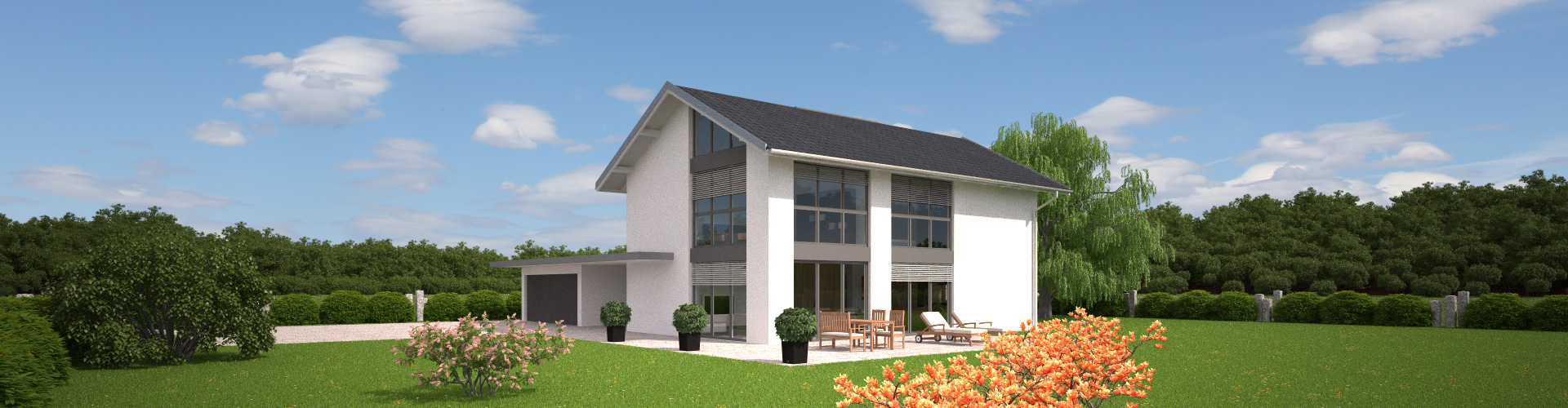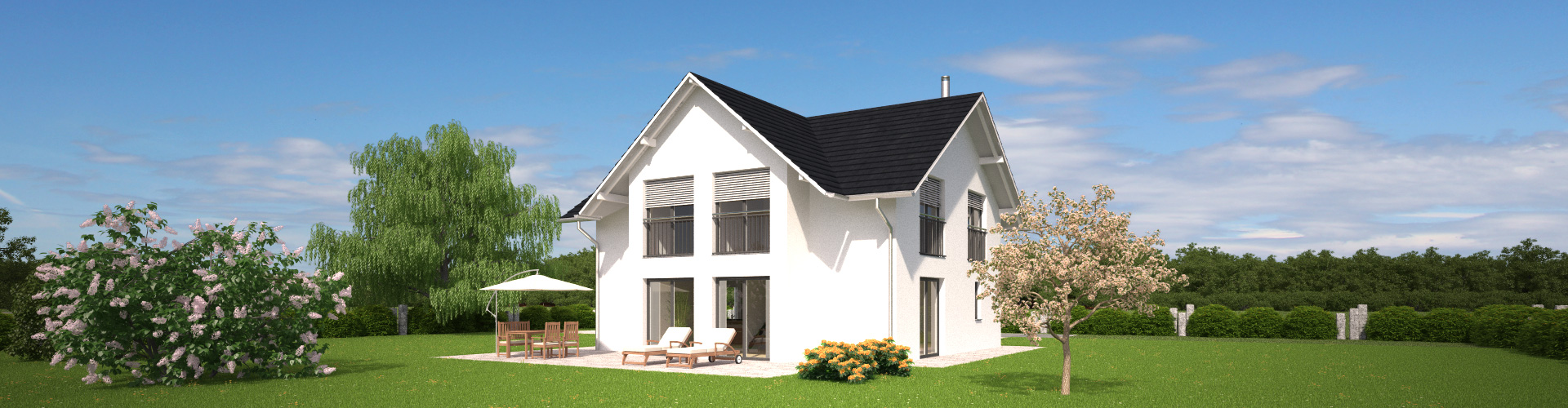 *Interieur und Exterieur sind optional. Die dargestellten Bilder sind visuelle Konzepte und können aus bautechnischen Gründen vom zu bauenden Haus abweichen. Die angegebenen Preise sind ungefähre Richtpreise, da Gebühren von Gemeinde zu Gemeinde stark variieren. Der Preis hängt des Weiteren auch von der Geländebeschaffenheit und der Lage des Grundstückes ab.